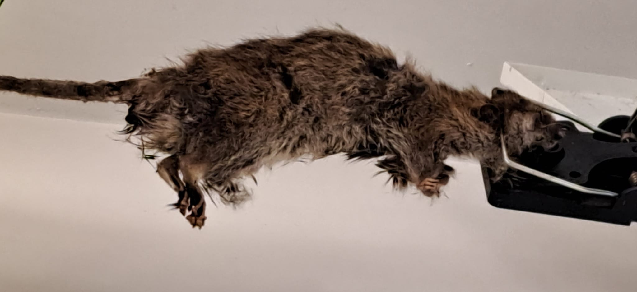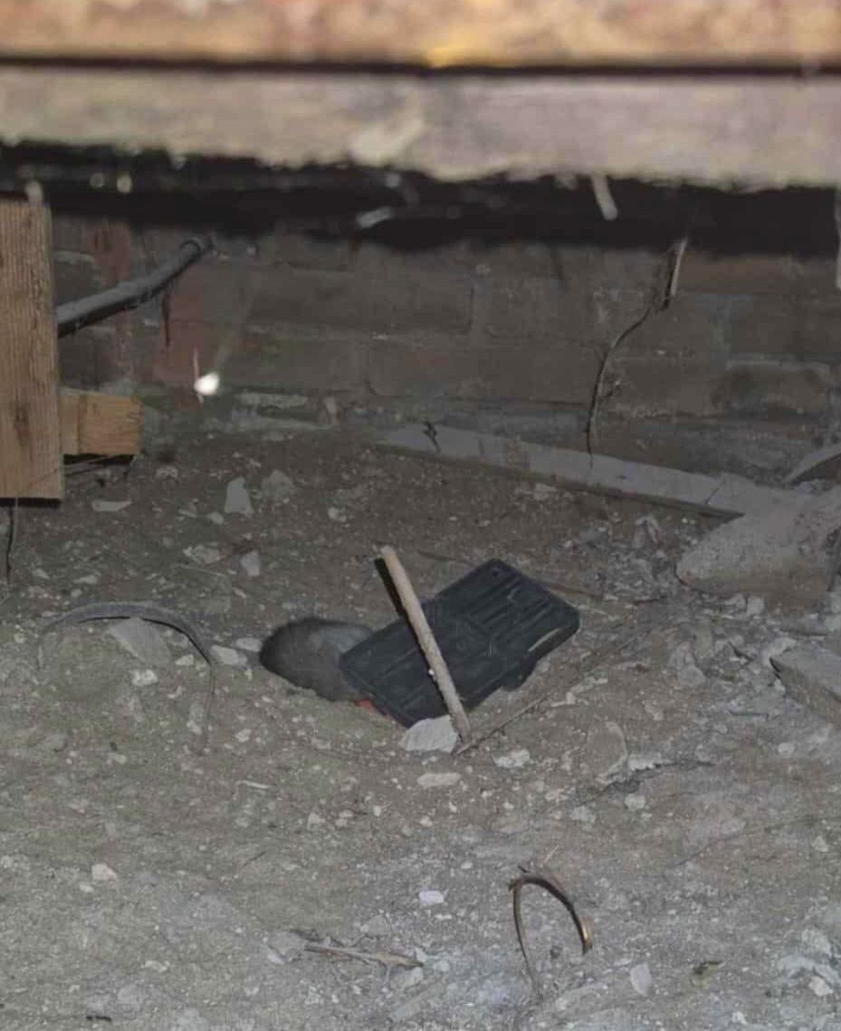 In die periode heeft Anticimex zeven ratten gevangen in één week tijd. Er werden toen ook rattenklemmen geplaatst (die heeft zij nu nog steeds in gebruik), iedere week ving zij twee a drie ratten. Daarna werd het een aantal jaar rustig. Maar op een ochtend stond haar autistische zoon oog in oog met een rat, sindsdien is hij erg angstig geworden, vertelt Chantal. Dat is nu zo’n anderhalf jaar geleden, zegt ze. Chantal laat een foto zien die onder in de kruipruimte is gemaakt. Daarop zie je een dode rat in een klem zitten en het valt meteen op dat de vloer niet geïsoleerd is. De kou en alle geluiden vanuit de kruipruimte voel en hoor je boven in de woning zelf, zegt ze. Ik betaal per maand zo’n 200 euro voor
